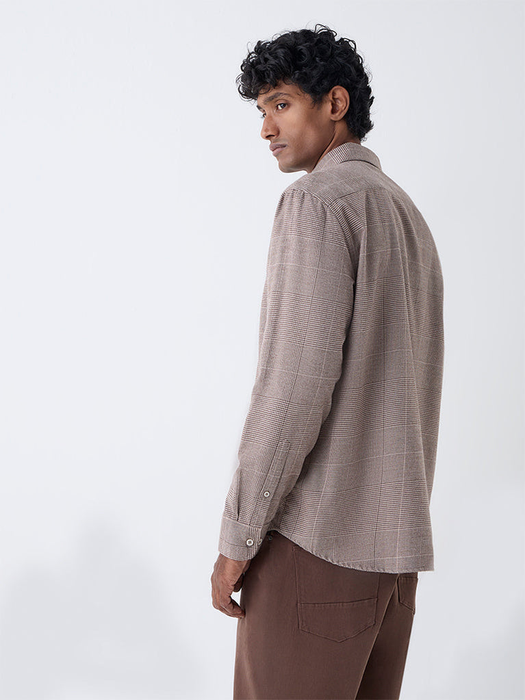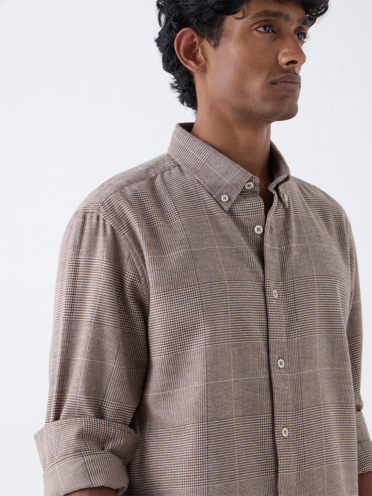 Ascot Tan Checkered Relaxed-Fit Cotton-Blend Shirt