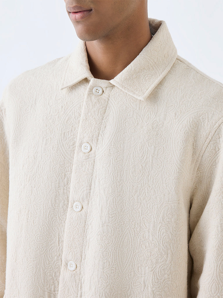 ETA Cream Jacquard Relaxed-Fit Cotton Shirt