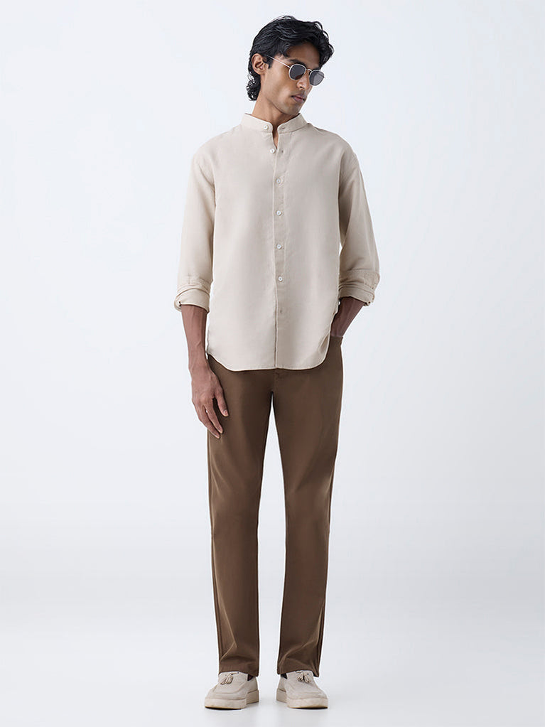 Ascot Beige Solid Relaxed-Fit Linen-Blend Shirt
