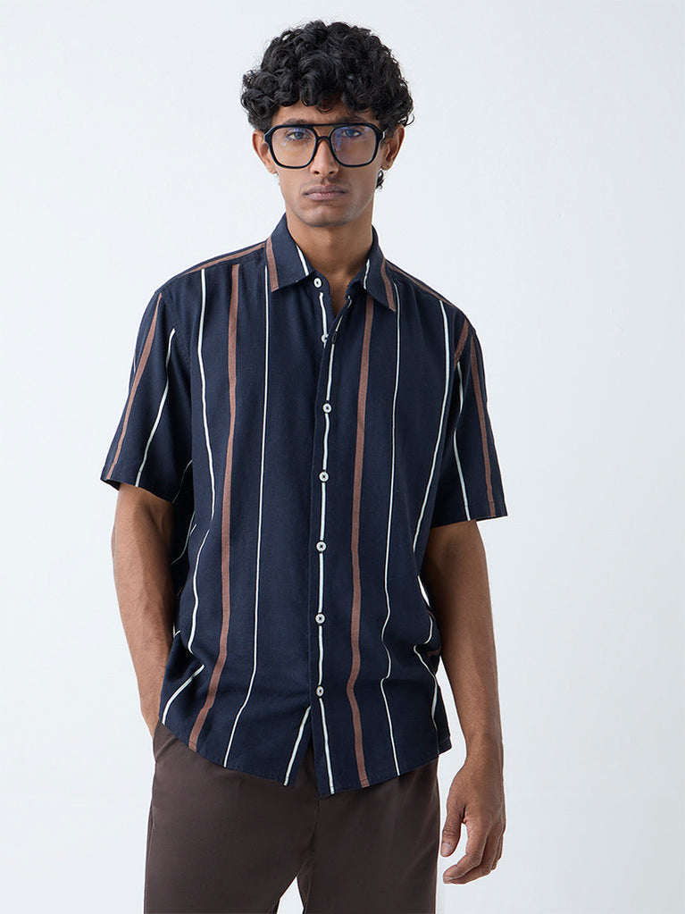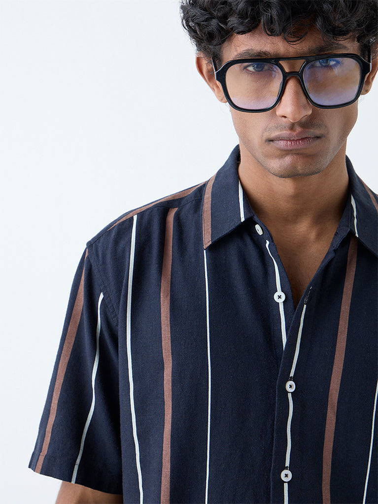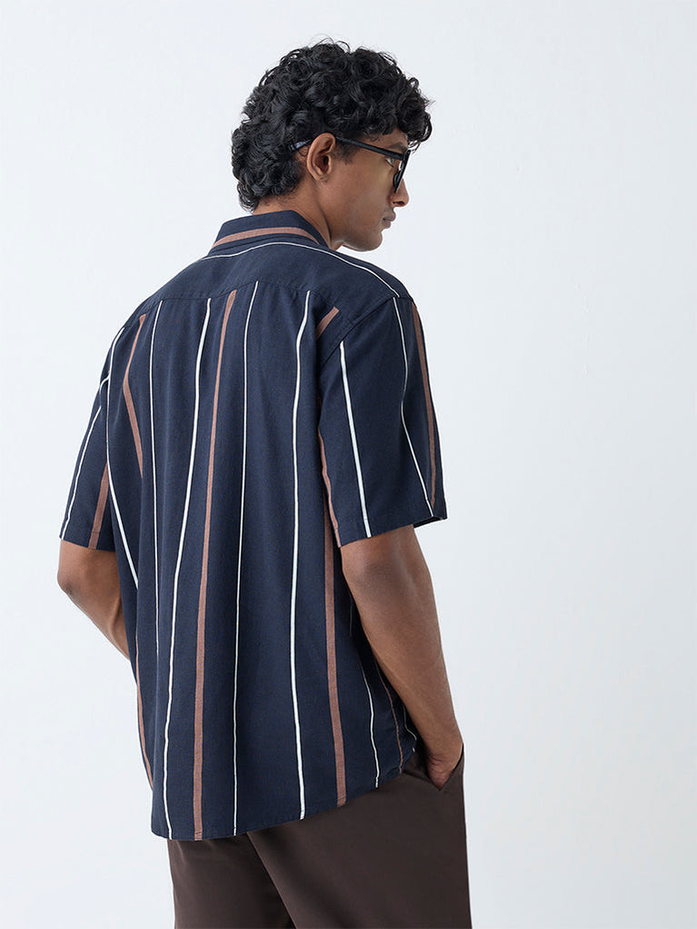 Ascot Blue Striped Relaxed-Fit Cotton Shirt