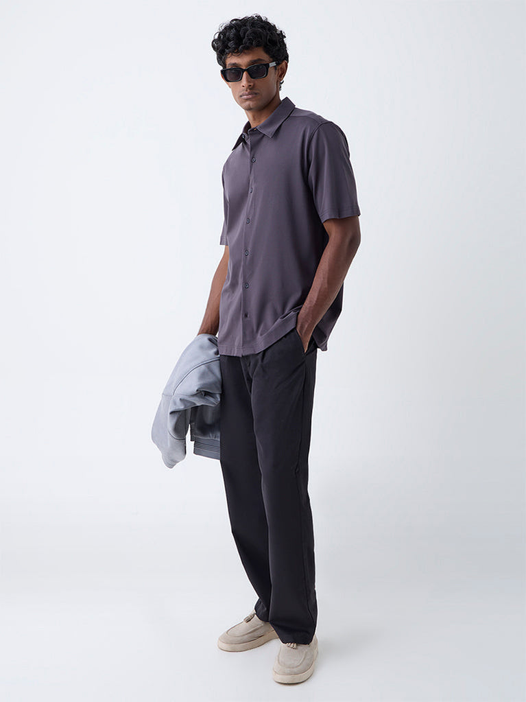 Ascot Charcoal Solid Relaxed-Fit Shirt