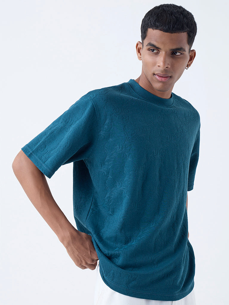 ETA Dark Teal Botanical Design Relaxed-Fit Cotton-Blend T-Shirt