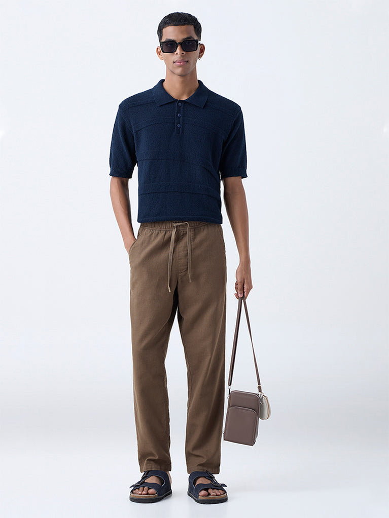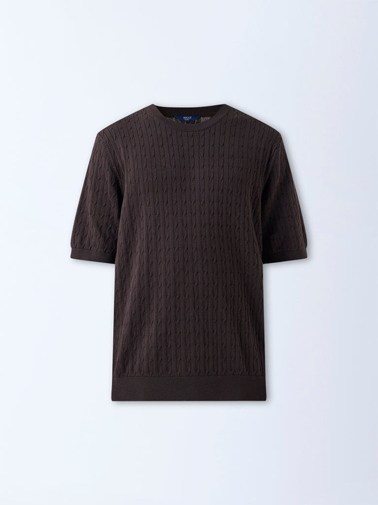 Ascot Dark Brown Cable-Knit Relaxed-Fit Cotton T-Shirt