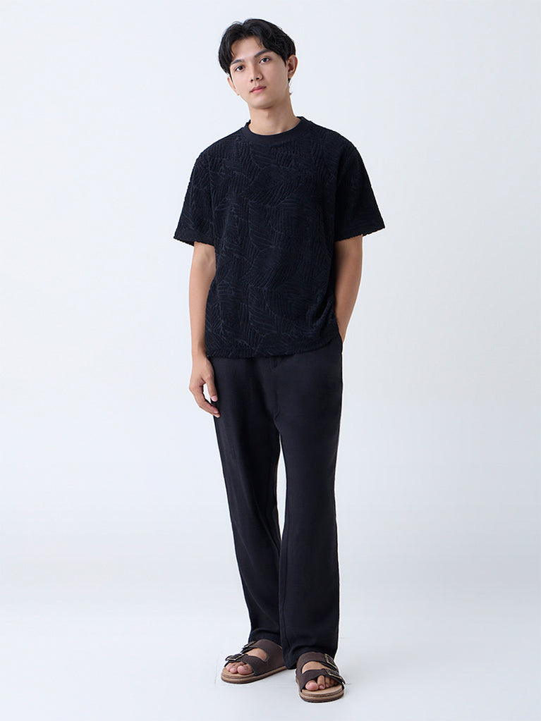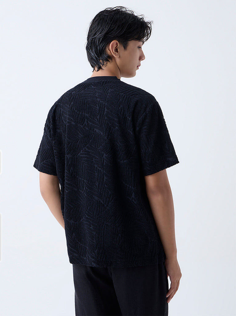 ETA Black Textured Relaxed-Fit Cotton-Blend T-Shirt