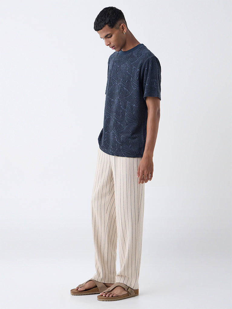 Ascot Beige Self-Stripe Relaxed-Fit Cotton-Blend T-Shirt
