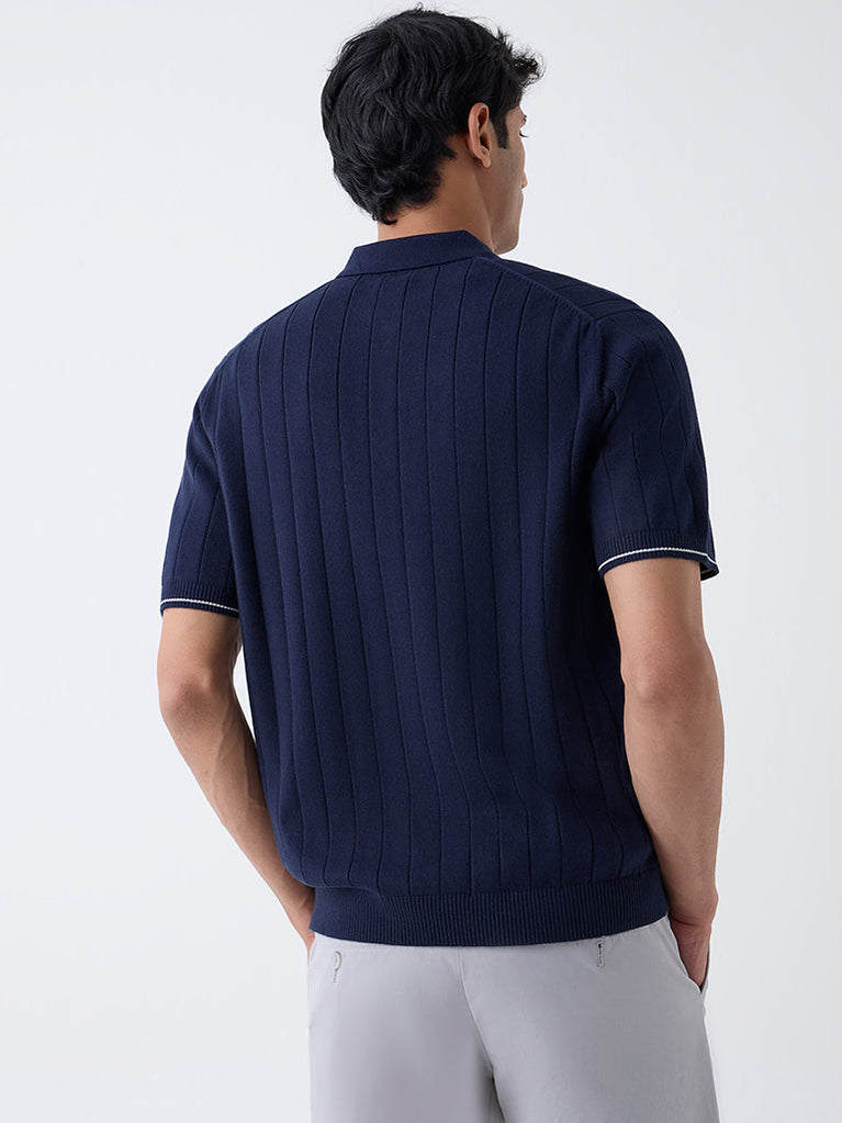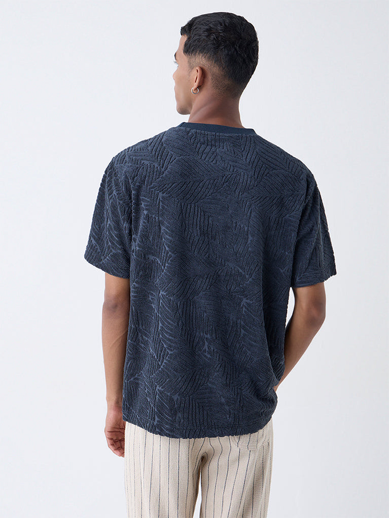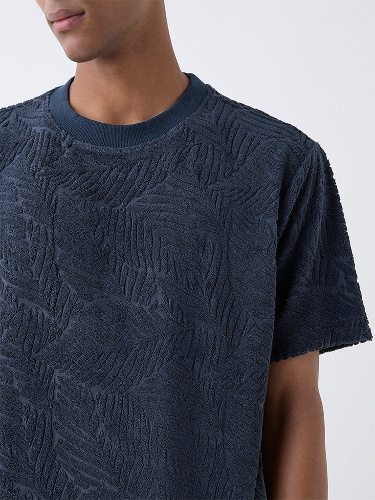 Ascot Navy Ribbed-Textured Relaxed-Fit Cotton-Blend T-Shirt