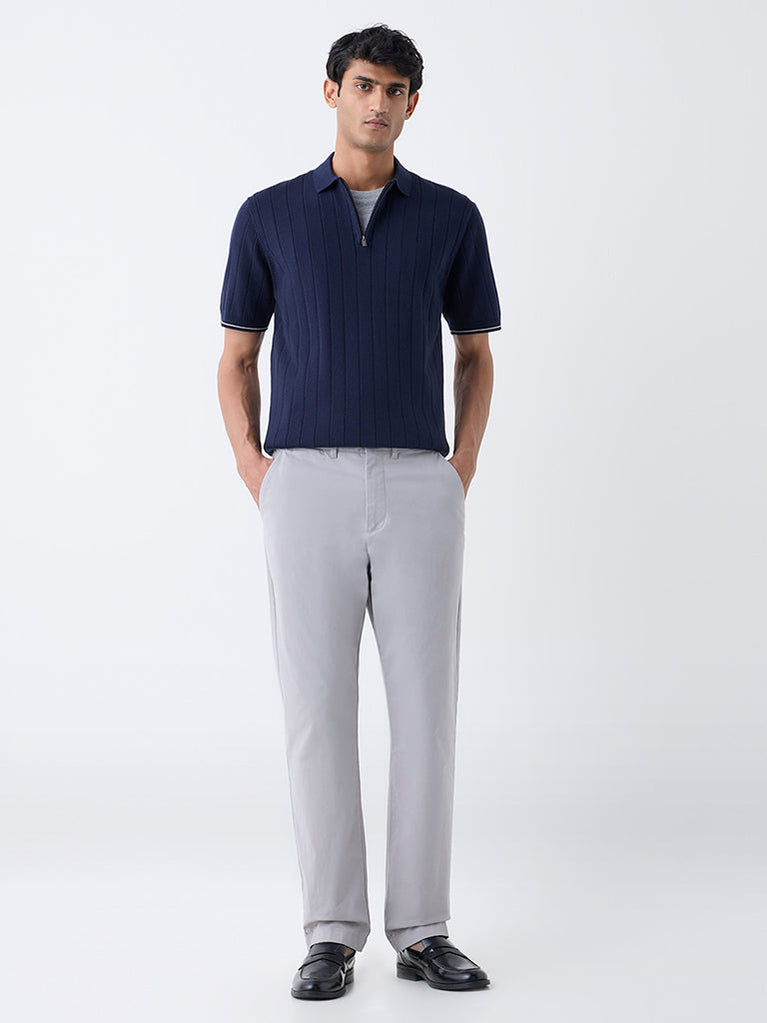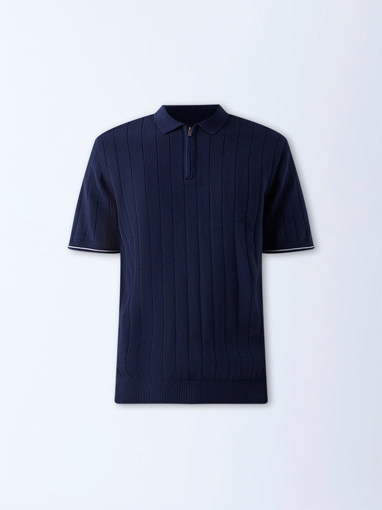 Ascot reimagines casual dressing with this navy polo t-shirt, spun from a soft cotton-blend fabric and finished with a sleek quarter-zip collar for a tailored touch. Its ribbed texture and short sleeves create a streamlined profile.