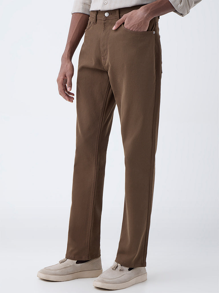 Ascot Brown Relaxed-Fit Mid-Rise Jeans