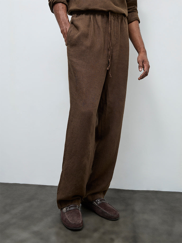 Ascot Brown Relaxed-Fit Mid-Rise Linen Chinos