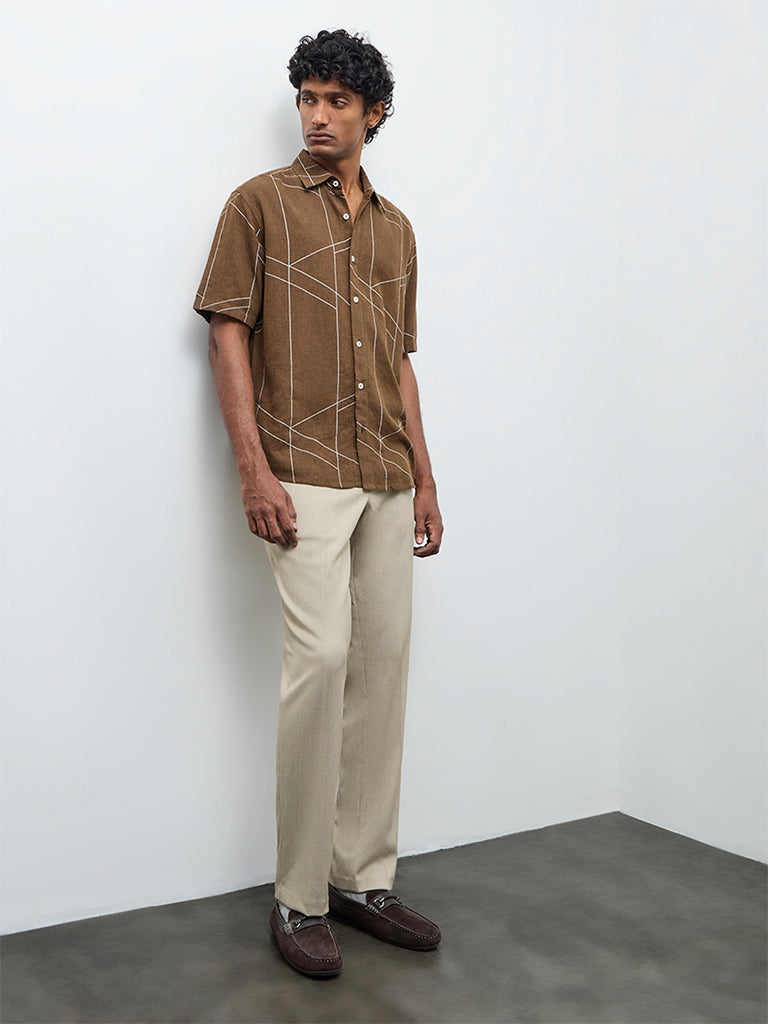 Ascot Dark Brown Abstract Printed Relaxed-Fit Shirt