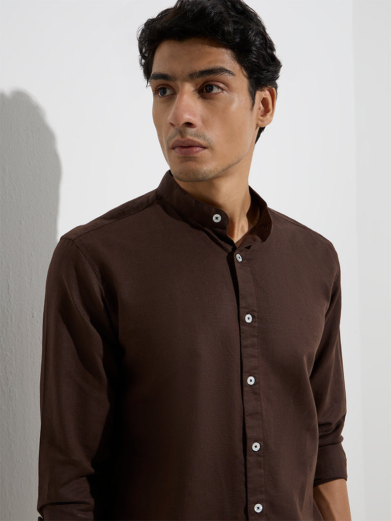 Ascot Dark Brown Solid Relaxed-Fit Linen-Blend Shirt