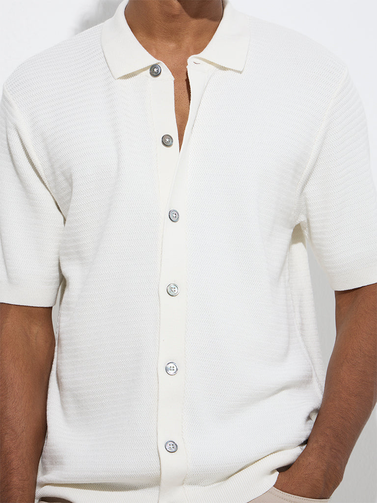 Ascot Ivory Knit-Textured Relaxed-Fit Cotton-Blend Shirt