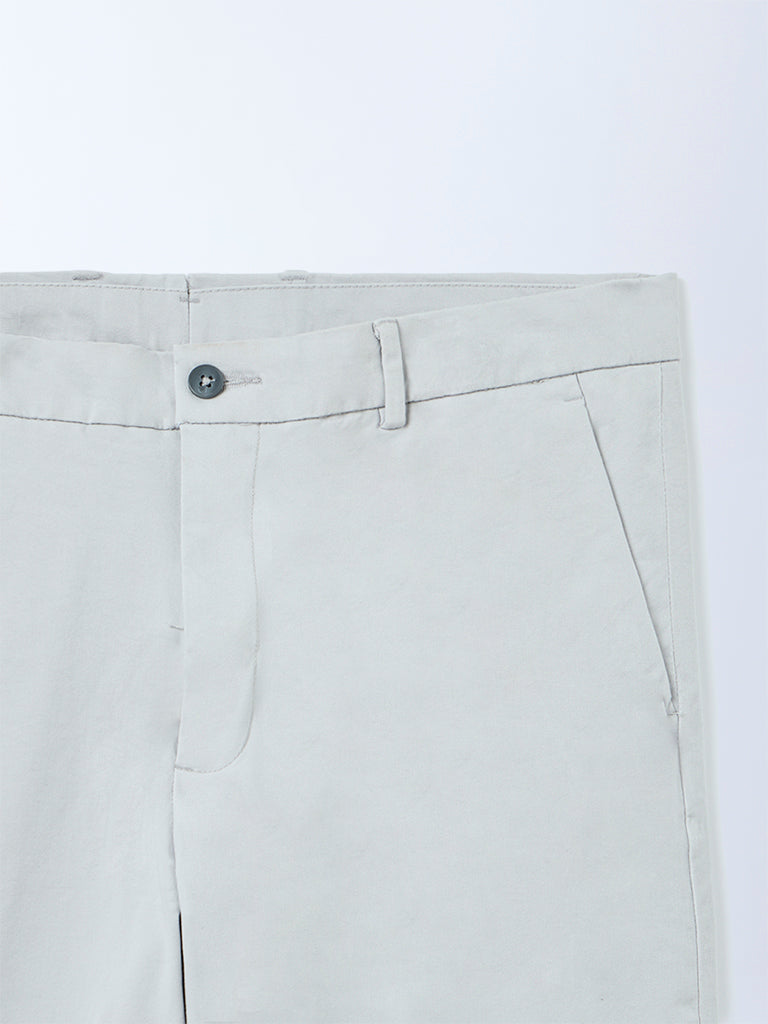 Ascot Light Grey Mid-Rise Relaxed-Fit Cotton-Blend Chinos