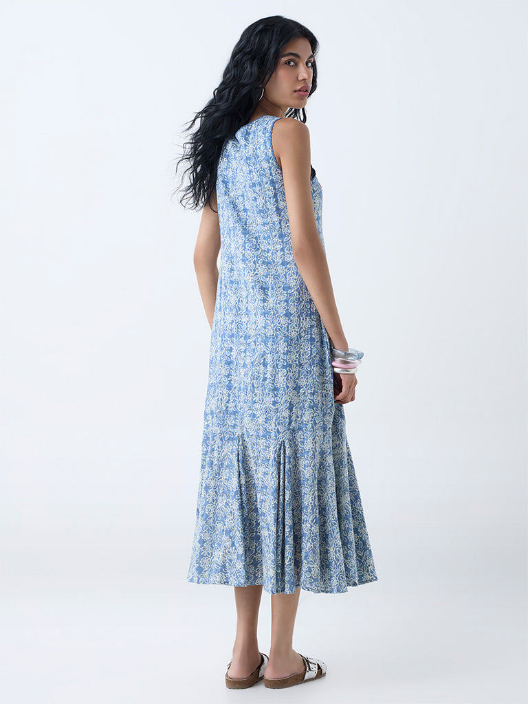 Bombay Paisley Blue Floral Design Cotton Drop-Waist Dress