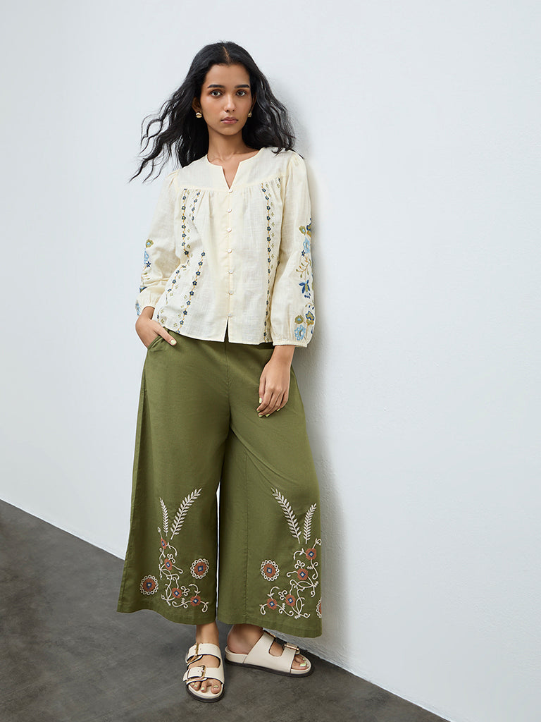 Bombay Paisley Cream Floral Embroidered Cotton Blouse