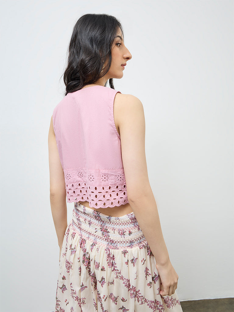 Bombay Paisley Pink Schiffli Embroidered Cotton Top