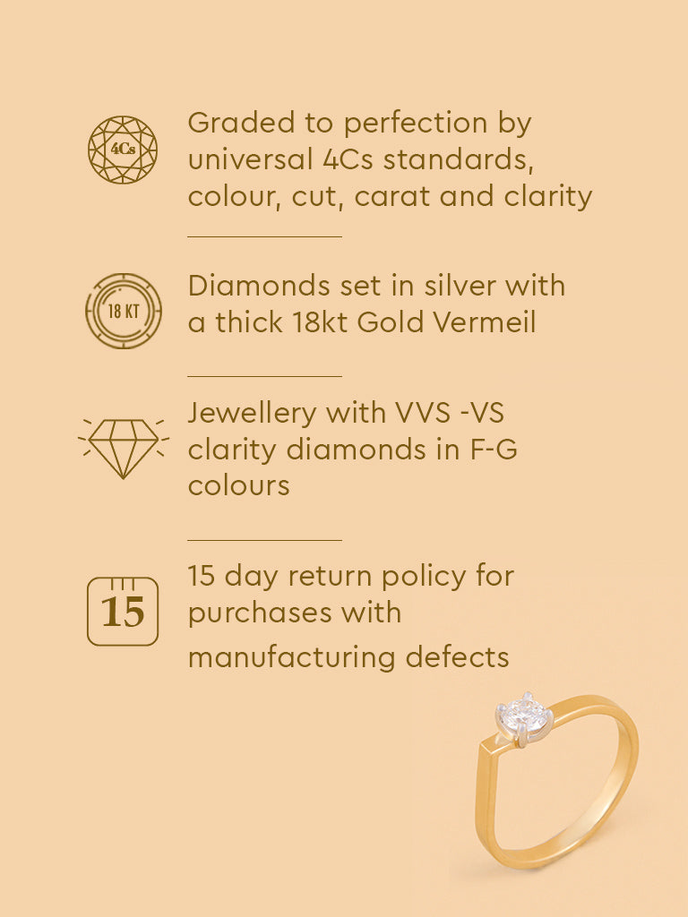 Shine bright with this brilliant solitaire lab diamond ring. Made in gold vermeil, it features a striking design that highlights the diamond’s sparkle.