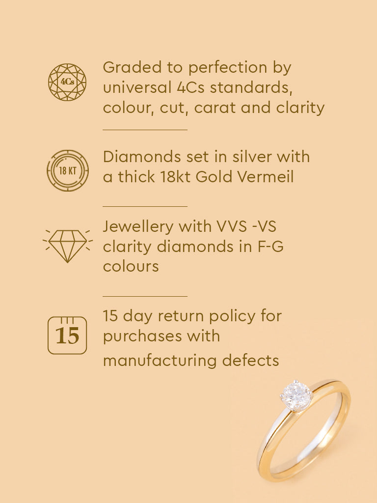 Enjoy timeless appeal with this dual tone solitaire lab diamond ring. Crafted in gold vermeil and sterling silver, it beautifully showcases the diamond’s brilliance.