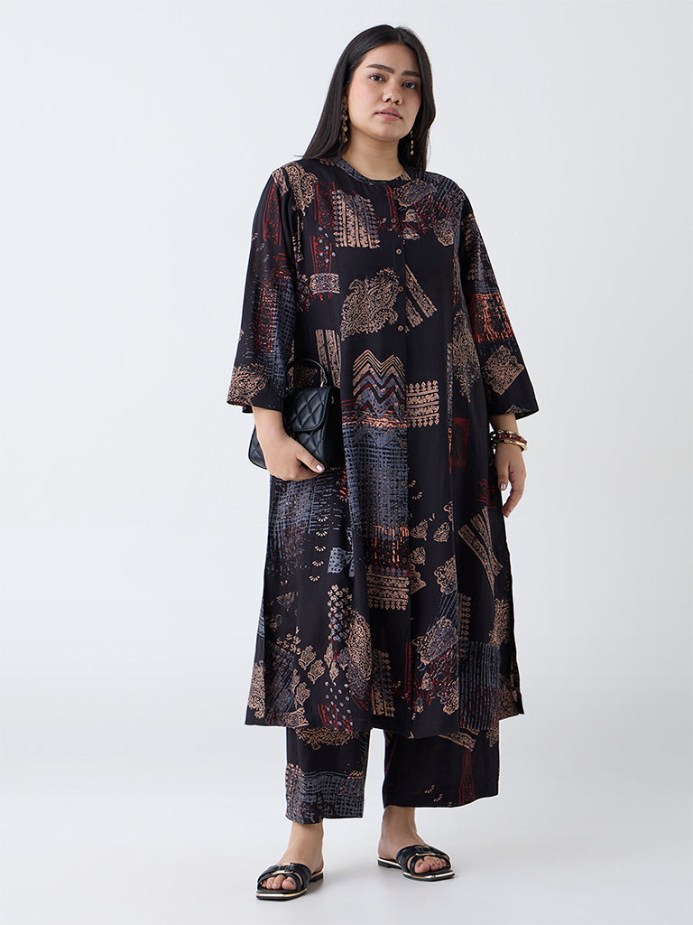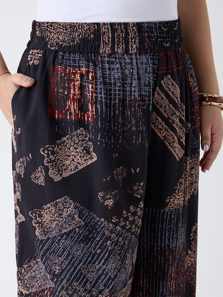 Crafted to amplify comfort and movement, these black ethnic pants by Diza flaunt traditional-inspired prints that bring subtle charm to the look. Made from lightweight fabric, the pair includes an elasticated waist with drawstrings and side pockets for a relaxed fit.