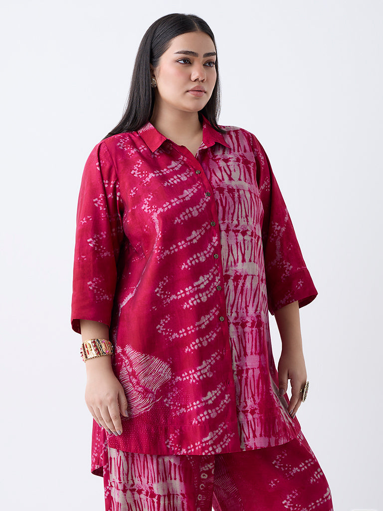 Reimagine festive dressing with this magenta ethnic tunic from Diza, adorned with abstract motifs that lend an artisanal edge. Spun from a lightweight fabric, it features a collar and button placket, balanced by three-fourth sleeves for a contemporary finish. Pair it effortlessly with ethnic pants or skirts.