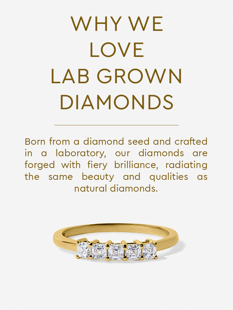 Celebrate a milestone with the enduring beauty of this Westside X Pome horizontal five-stone lab-grown diamond ring. Set on a polished gold band, the design showcases a radiant row of emerald-cut lab diamonds centered around a luminous solitaire, each secured with refined prongs to enhance their linear brilliance. Elegant and timeless, it makes a striking statement worn alone or paired seamlessly with an engagement ring.