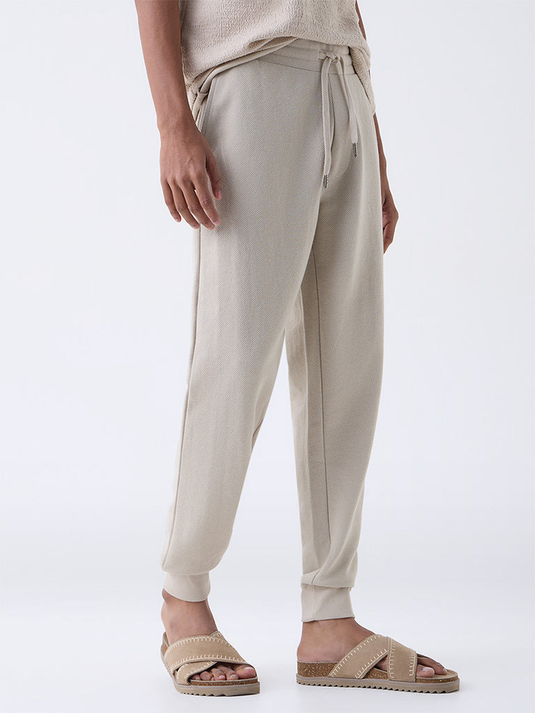 ETA Beige Relaxed-Fit Mid-Rise Cotton-Blend Joggers