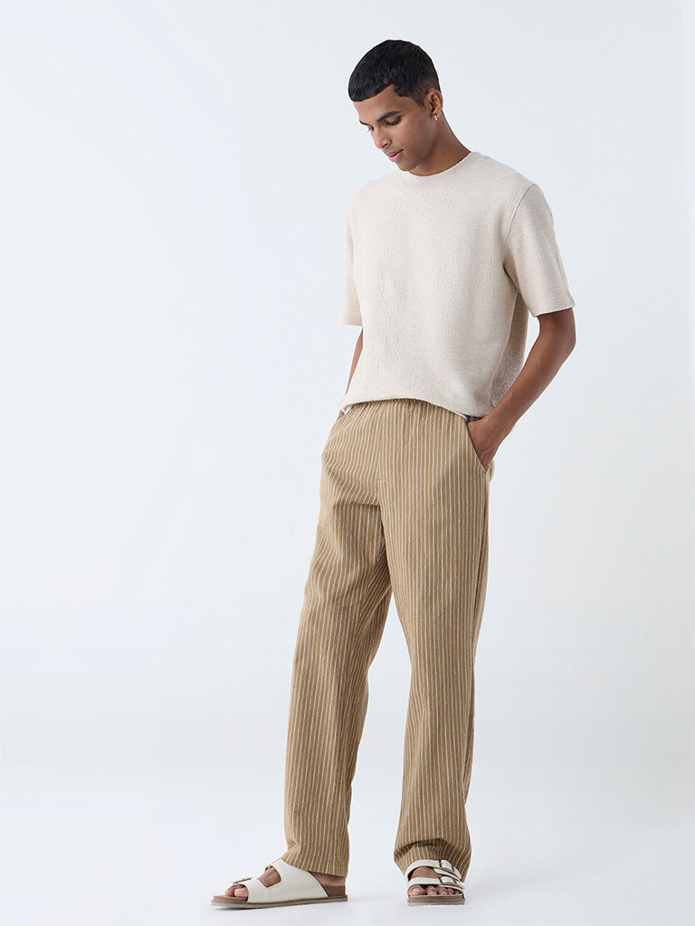 ETA Beige Self-Textured Relaxed-Fit Cotton-Blend T-Shirt