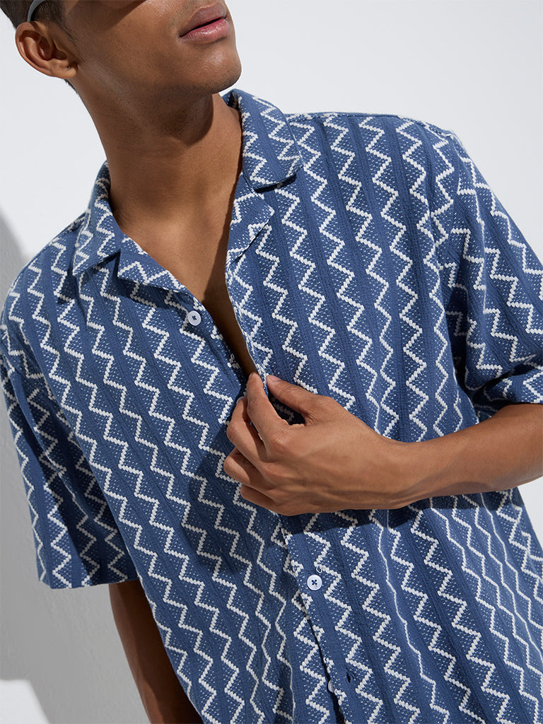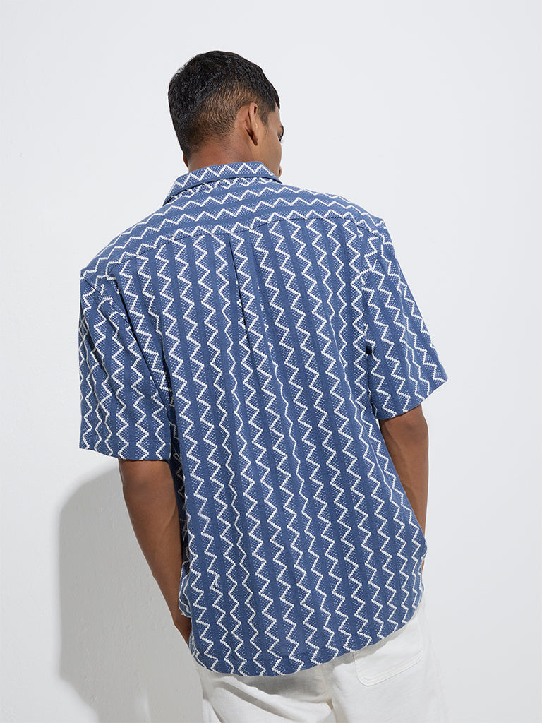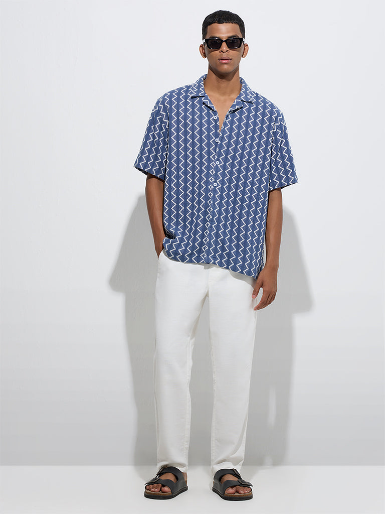 ETA Blue Chevron Embroidered Relaxed-Fit Cotton Shirt