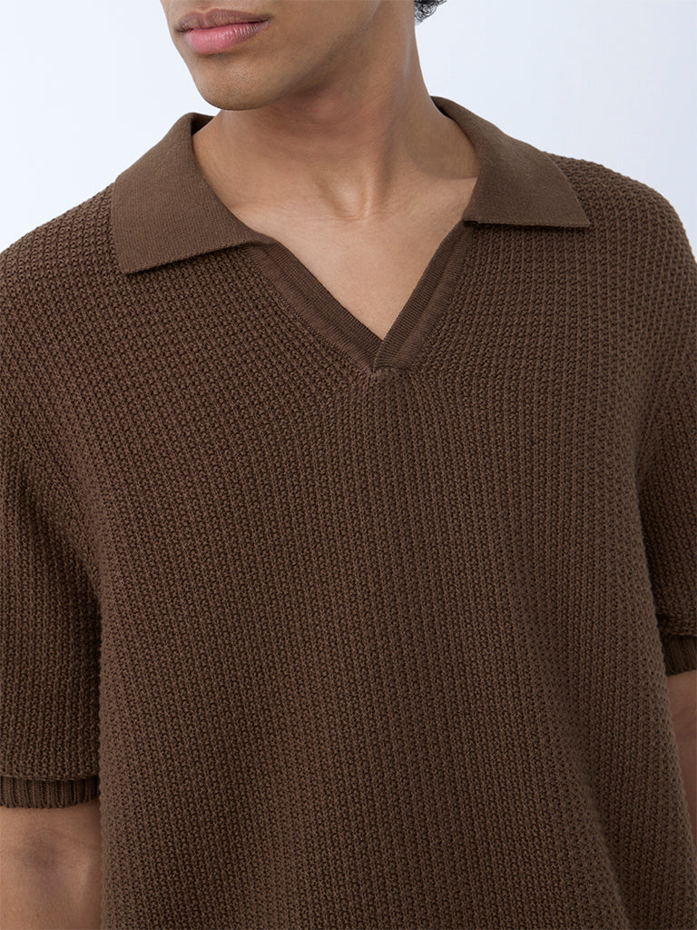 ETA Brown Knit-Textured Relaxed-Fit Polo T-Shirt