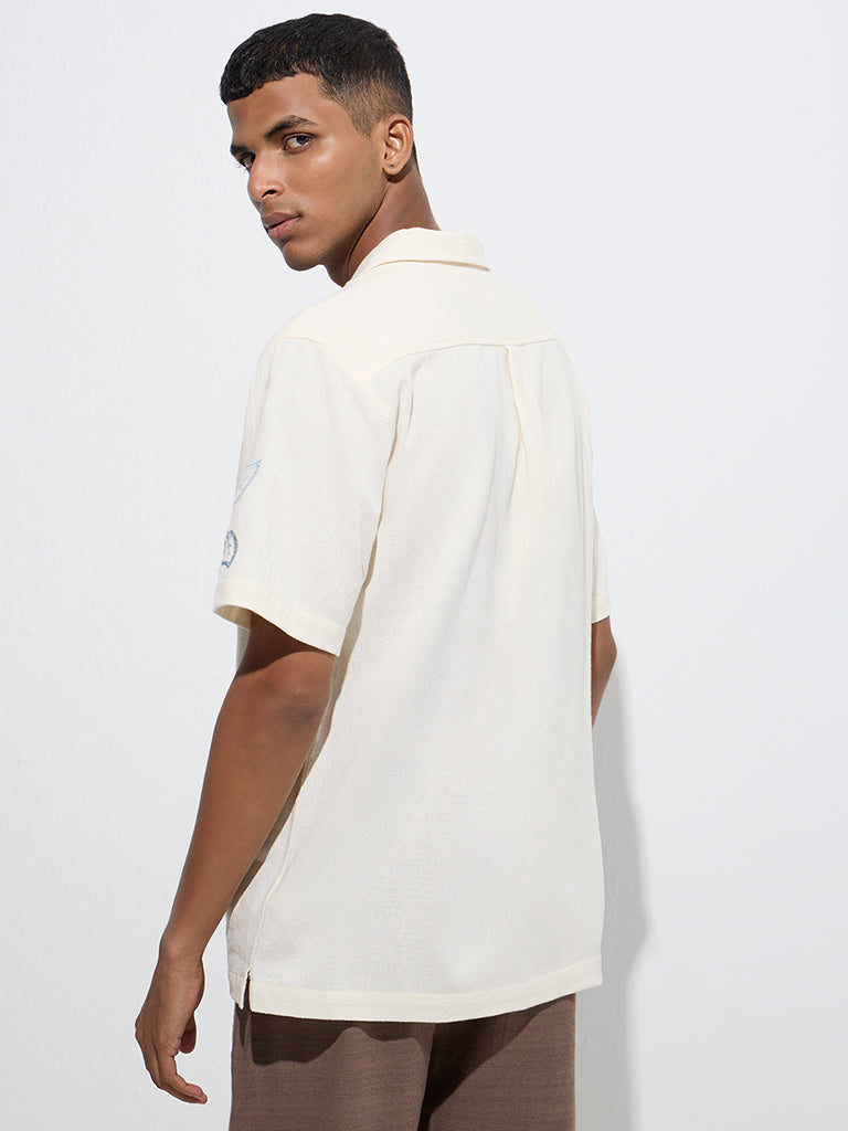 ETA Cream Embroidered Relaxed-Fit Cotton Shirt