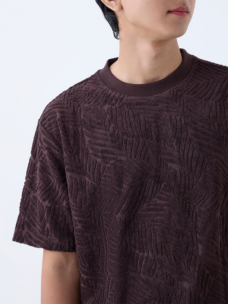 ETA Dark Brown Textured Relaxed-Fit Cotton-Blend T-Shirt