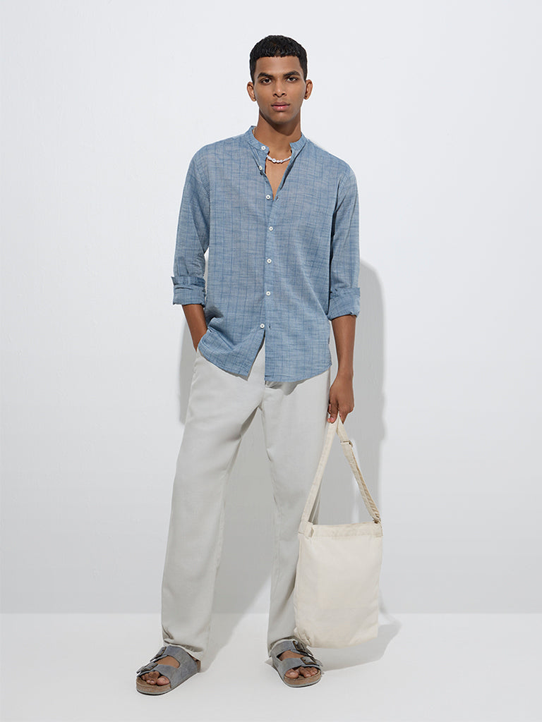 ETA Dusty Blue Stripe Design Relaxed-Fit Cotton Shirt