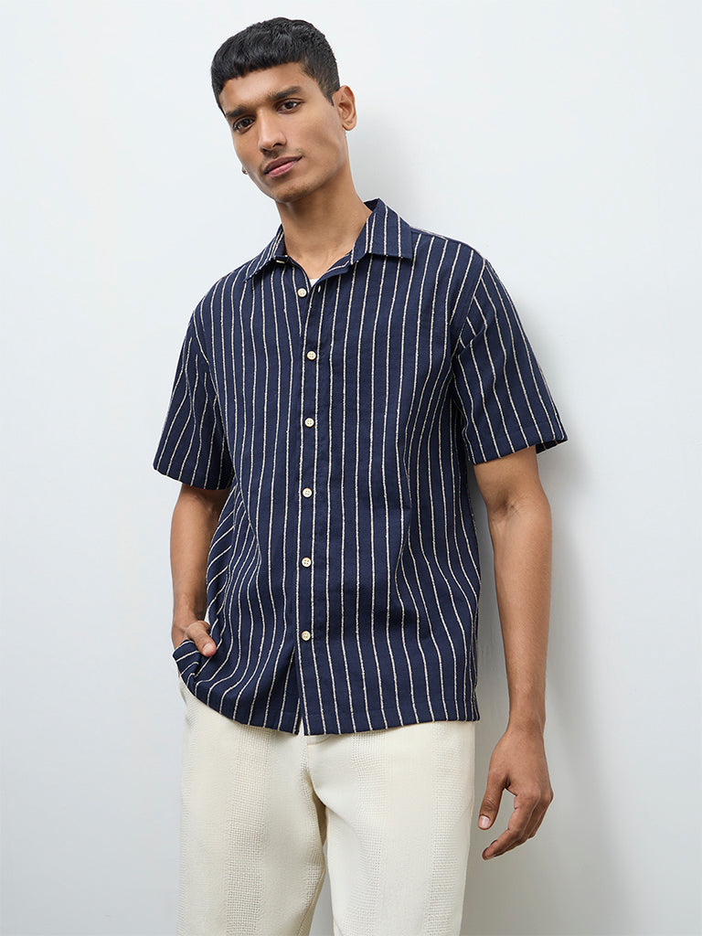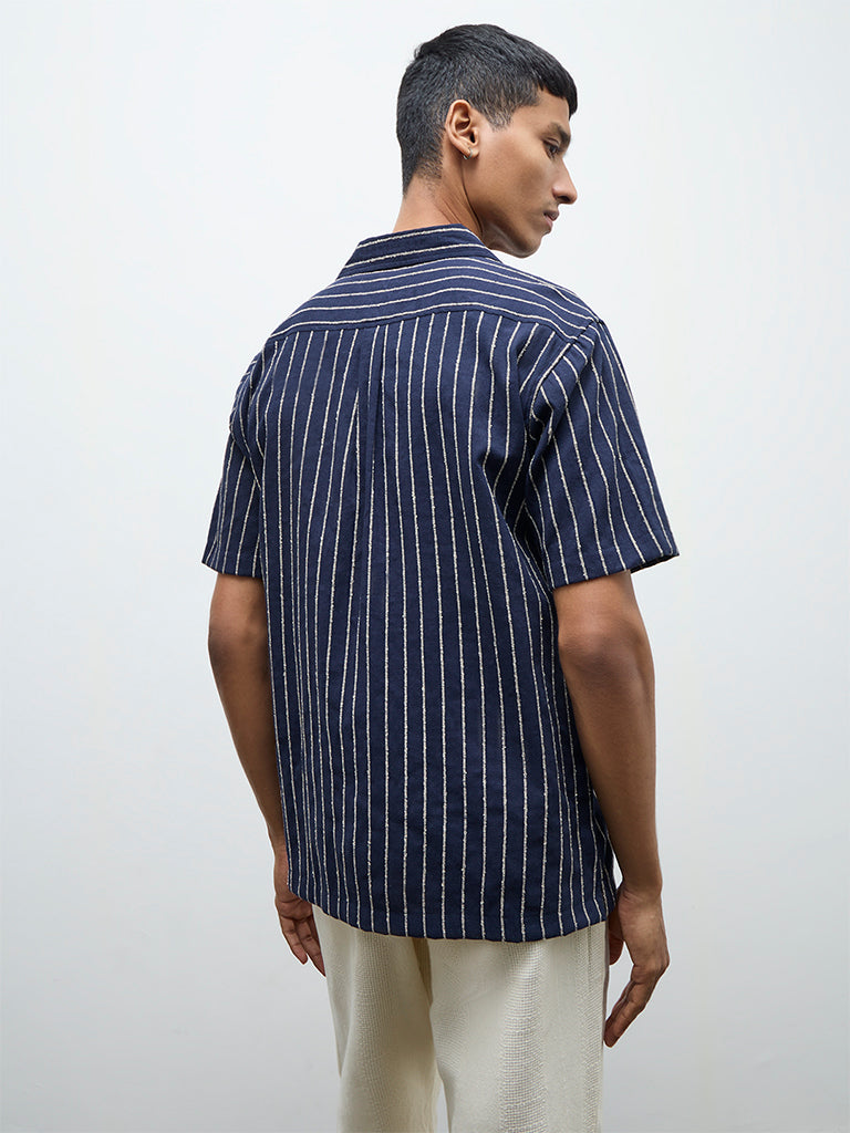 ETA Navy Striped Relaxed-Fit Shirt