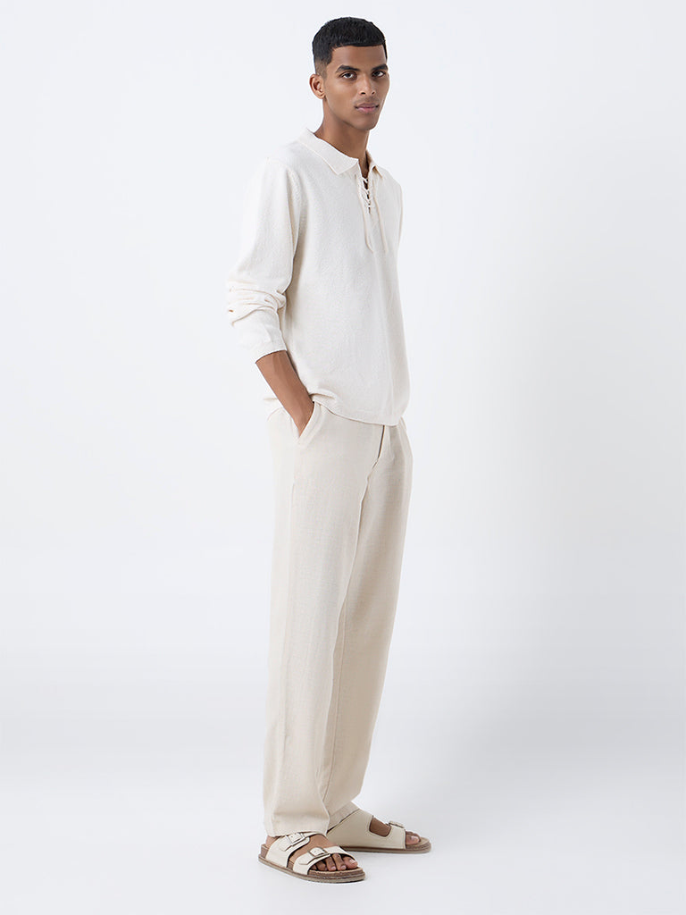 ETA Off-White Textured Relaxed-Fit Cotton-Blend Sweater