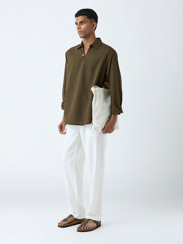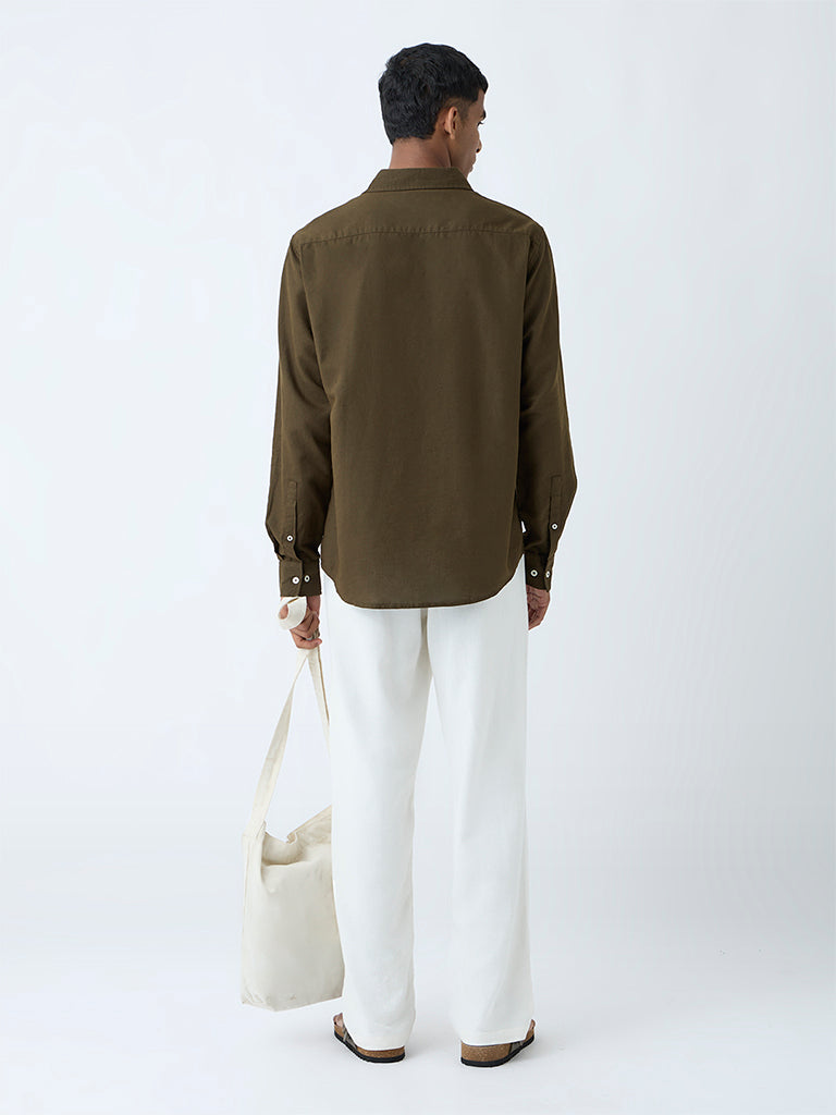 ETA Olive Solid Relaxed-Fit Cotton-Blend Shirt