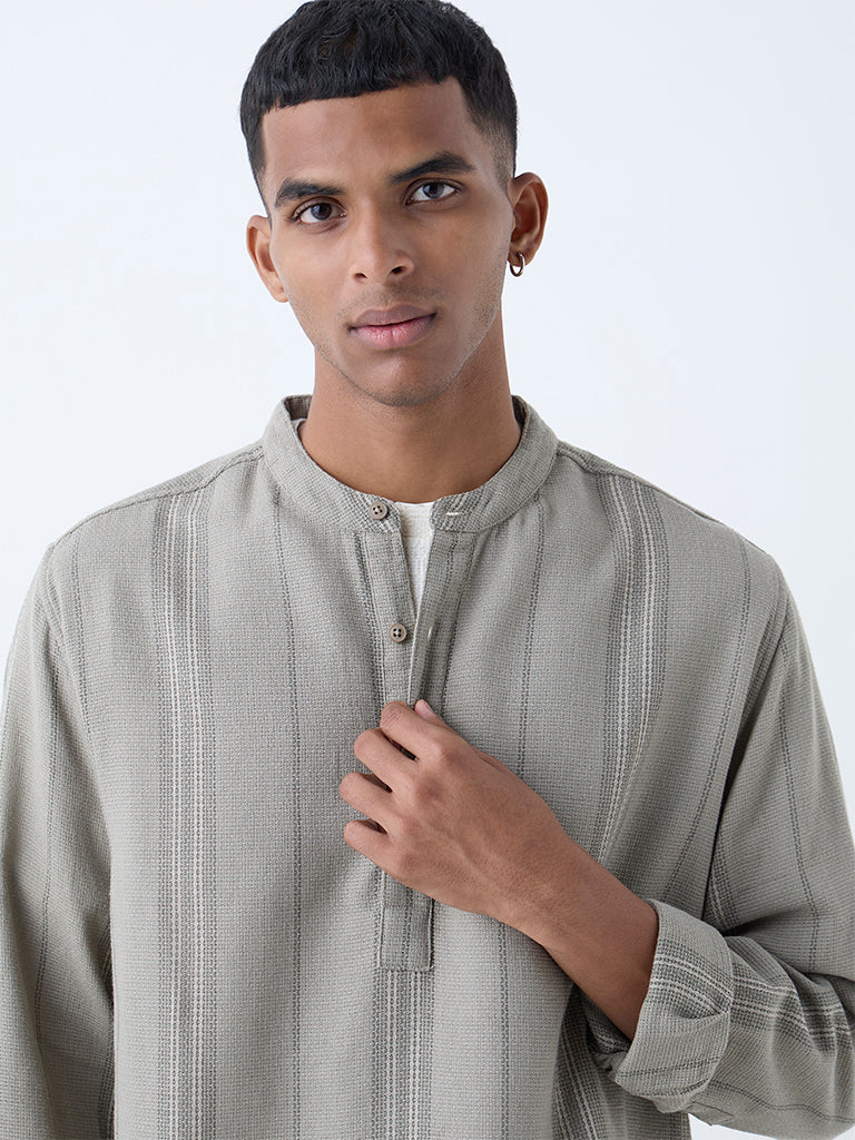 ETA Olive Stripe Relaxed-Fit Cotton Shirt