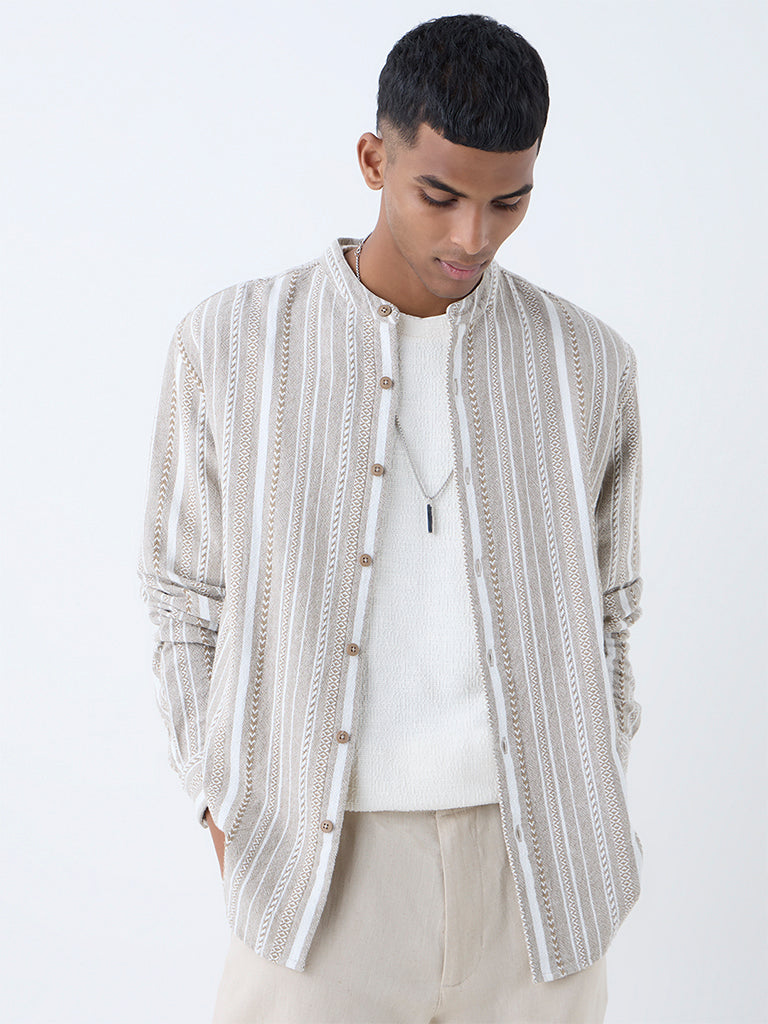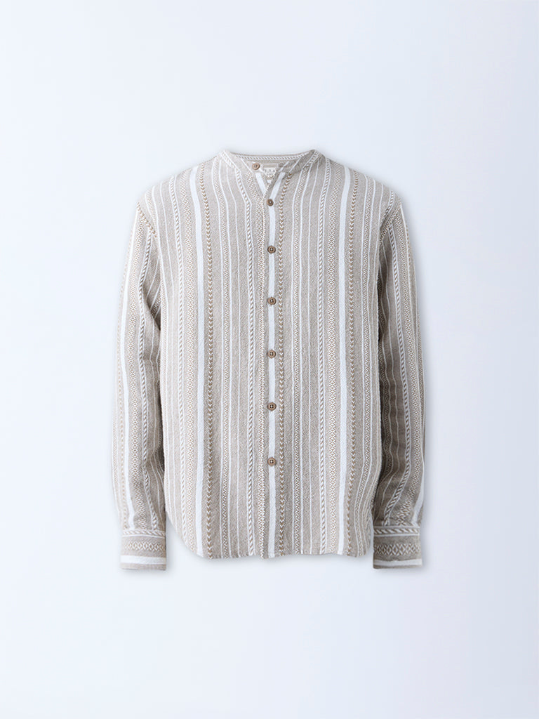 ETA Taupe Stripe Pattern Relaxed-Fit Cotton Shirt