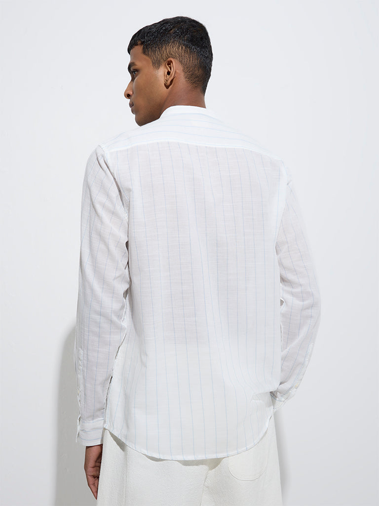 ETA White Stripe Printed Relaxed-Fit Cotton Shirt