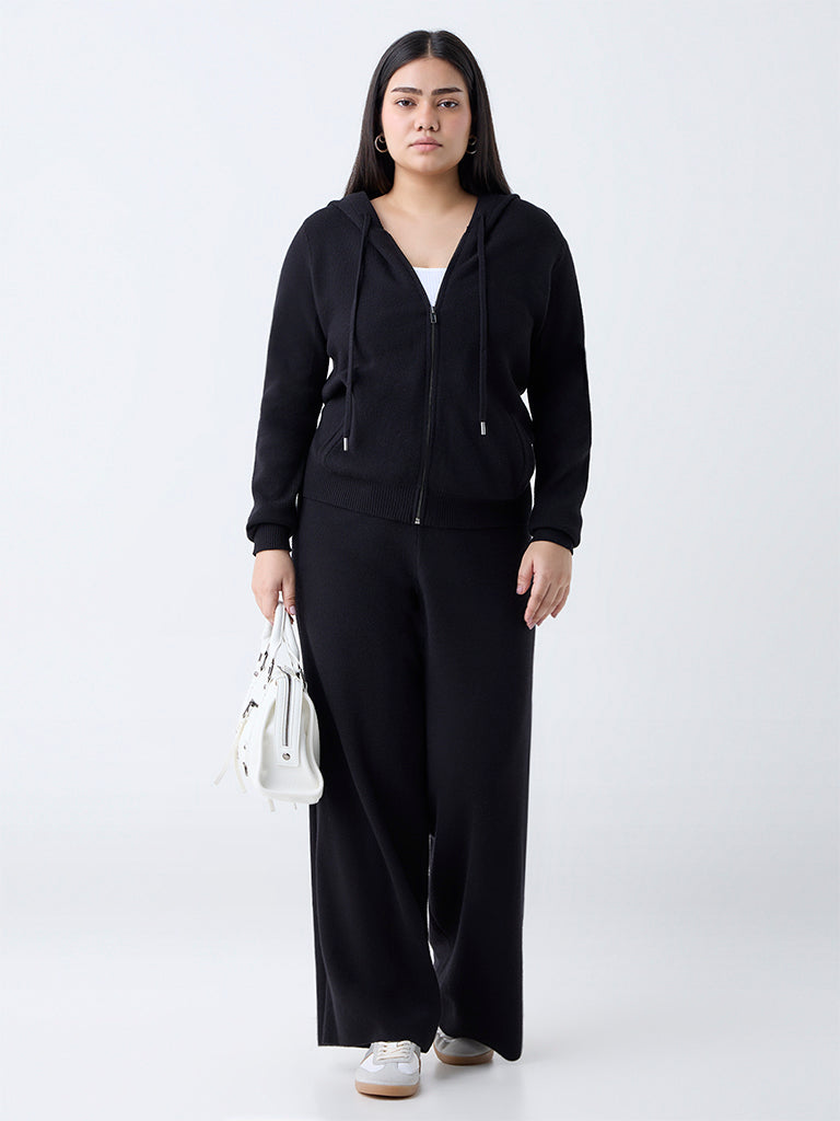 Upgrade your winter wardrobe with this black knit-textured jacket from Gia. Designed with a sleek zipper front, it features full sleeves and an attached hood with adjustable drawstrings for versatile styling. Finished with practical side pockets, it offers the perfect blend of comfort and contemporary appeal.
