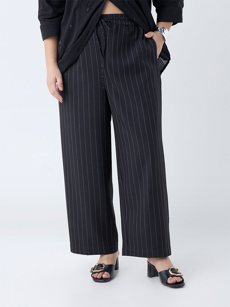 Gia Black Pinstriped High-Rise Trousers with Belt
