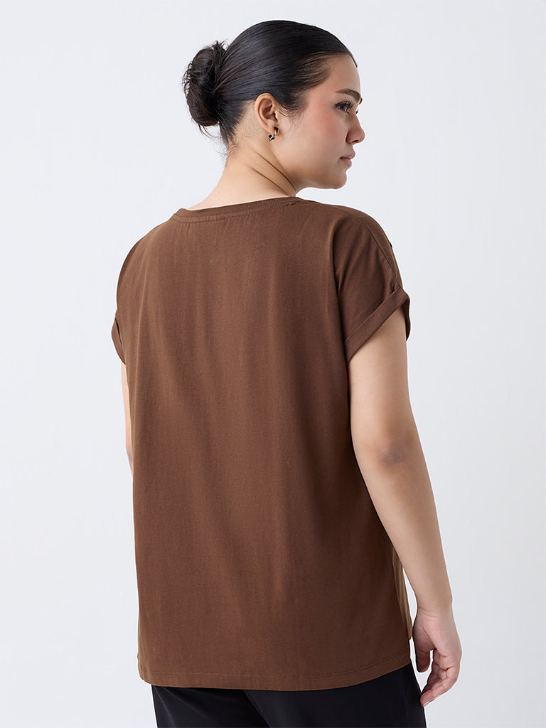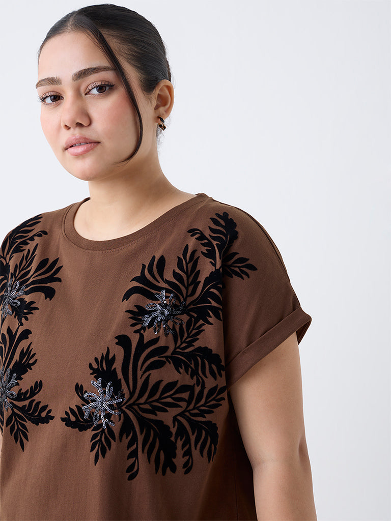 Gia Dark Brown Floral Pattern Cotton T-Shirt