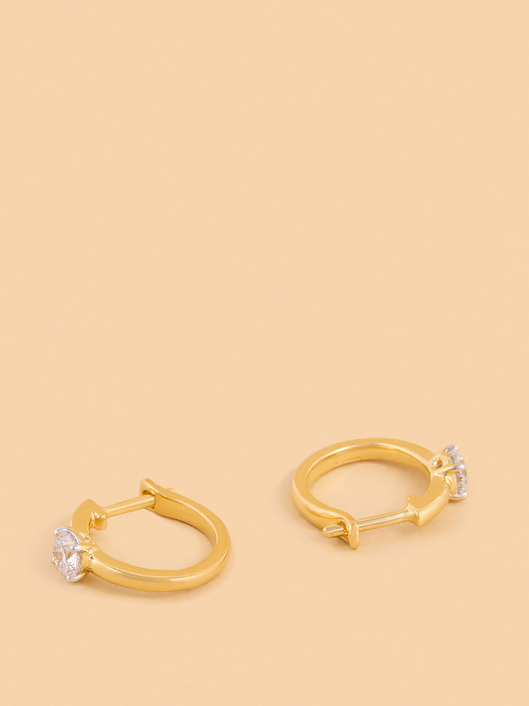 Elevate your style with these classic hoop solitaire earrings featuring lab diamond accents. Made with gold vermeil, they offer a timeless look that transitions effortlessly from day to night.