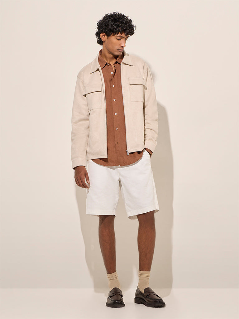Ascot Beige Faux-Suede Relaxed-Fit Jacket