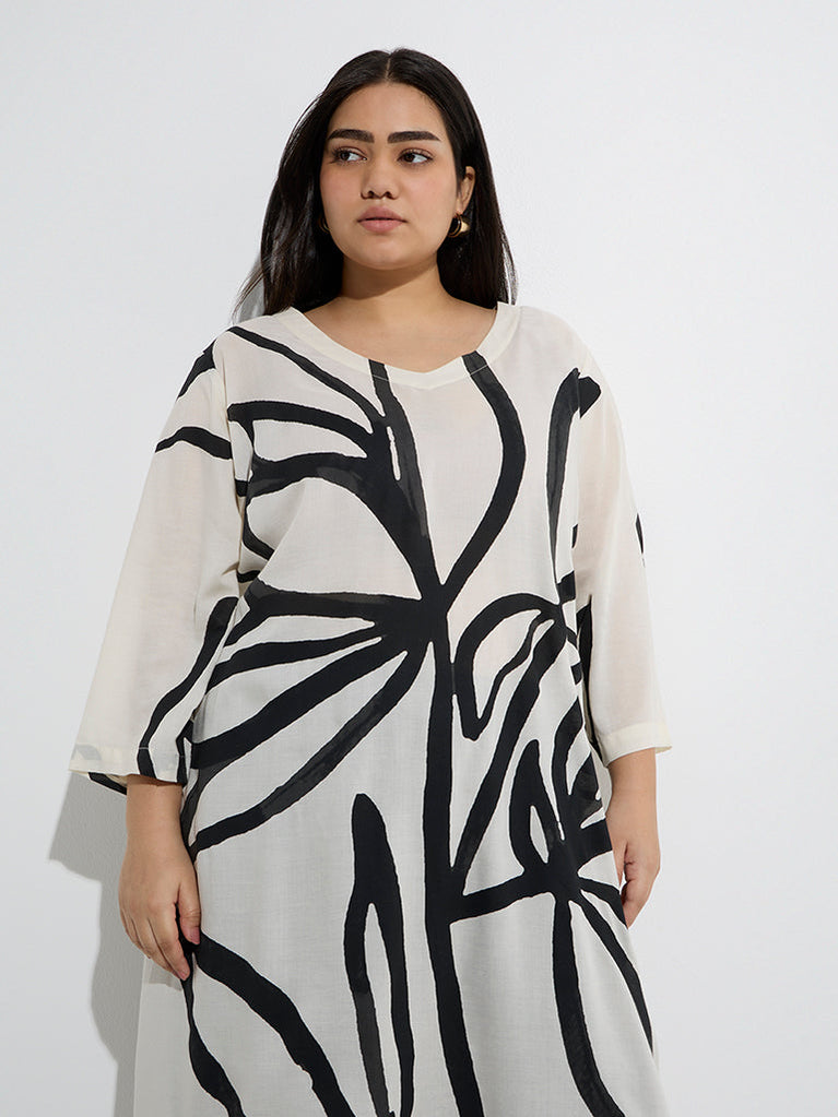 Diza introduces this off-white kurta featuring abstract prints that bring a contemporary flair to everyday ethnic wear. Sculpted in a flattering A-line silhouette from a breathable fabric, it offers all-day comfort with effortless style. A discreet slip pocket adds a practical touch, making it as functional as it is elegant.