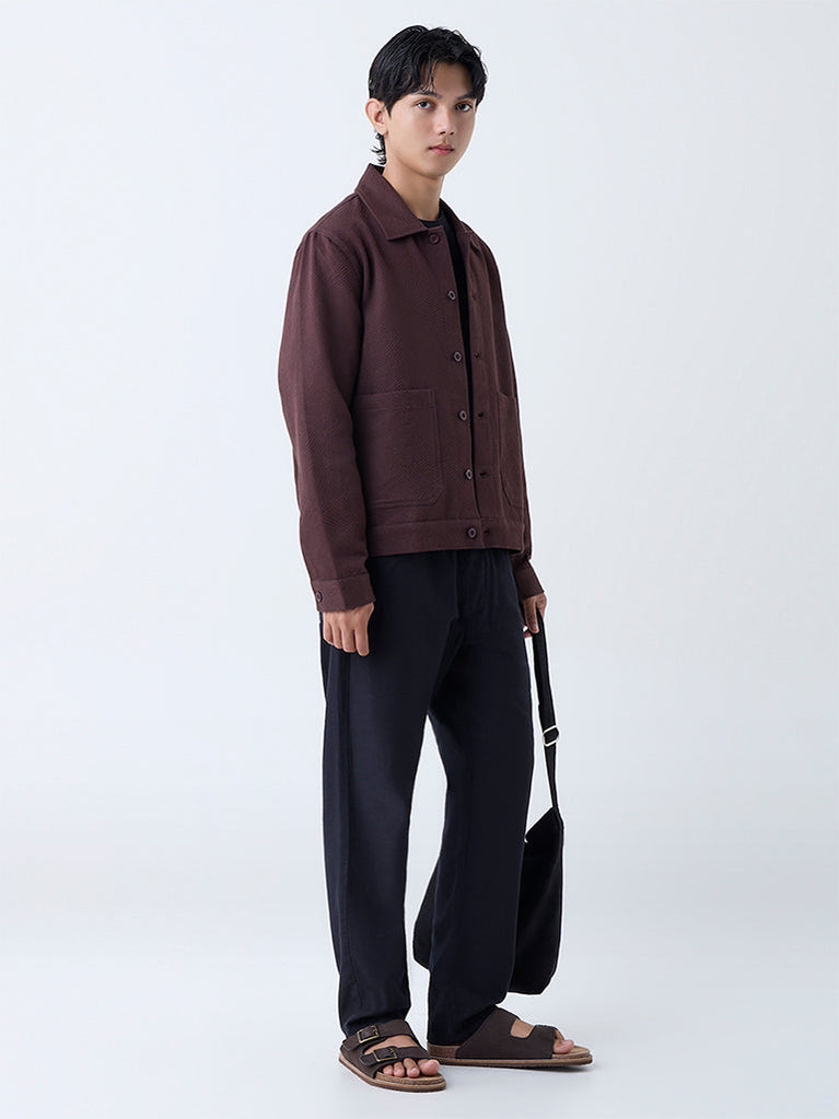 ETA Wine Textured Relaxed-Fit Cotton Jacket