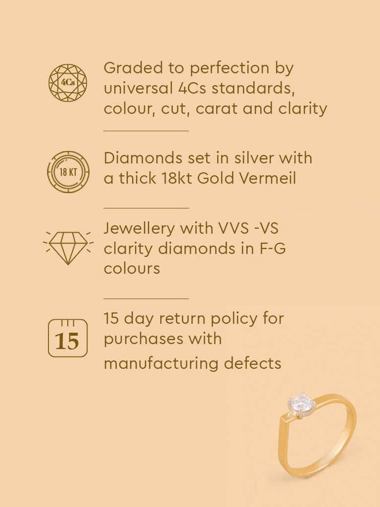 Shine bright with this brilliant solitaire lab diamond ring. Made in gold vermeil, it features a striking design that highlights the diamond’s sparkle.