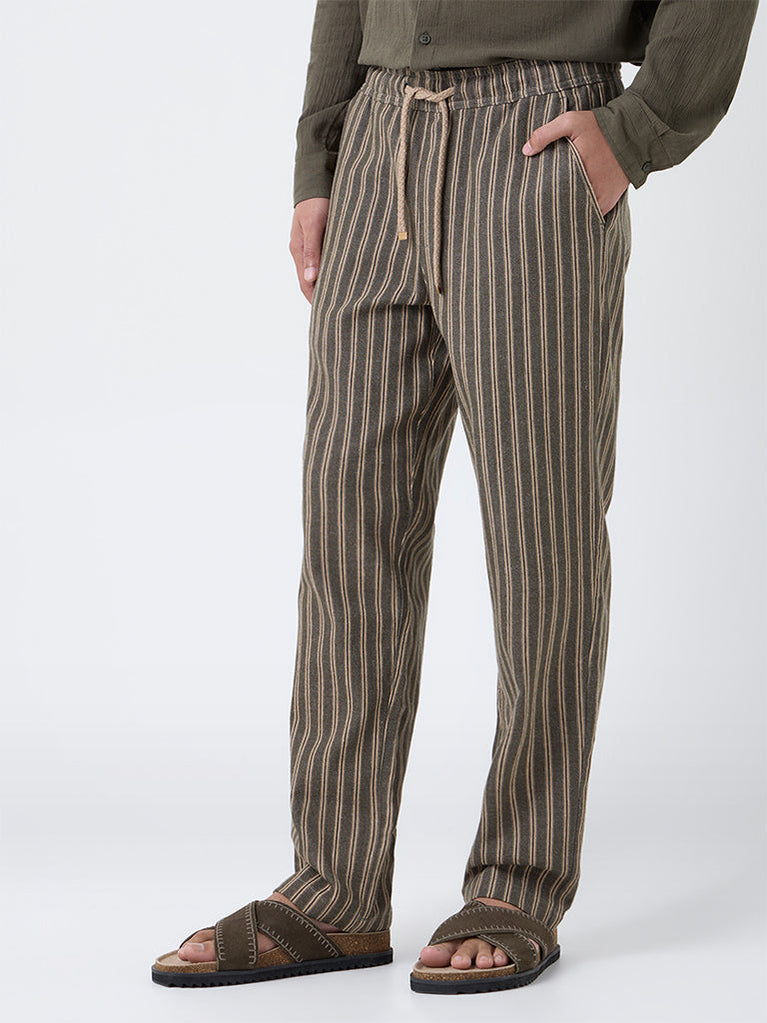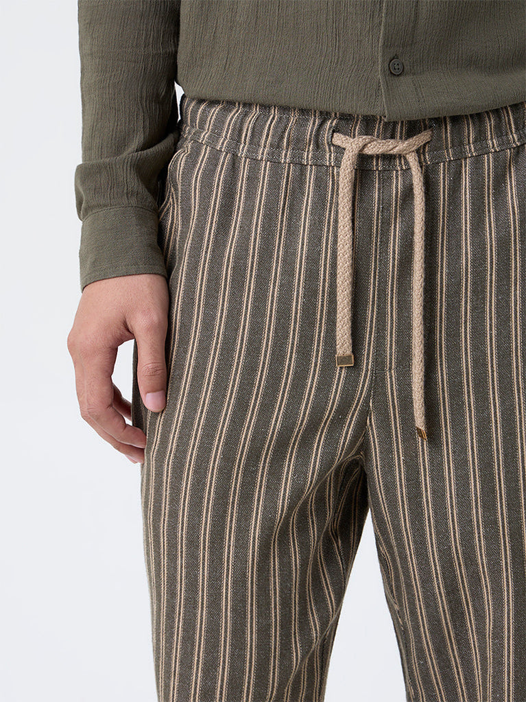ETA Olive Striped Relaxed-Fit Mid-Rise Cotton-Blend Chinos