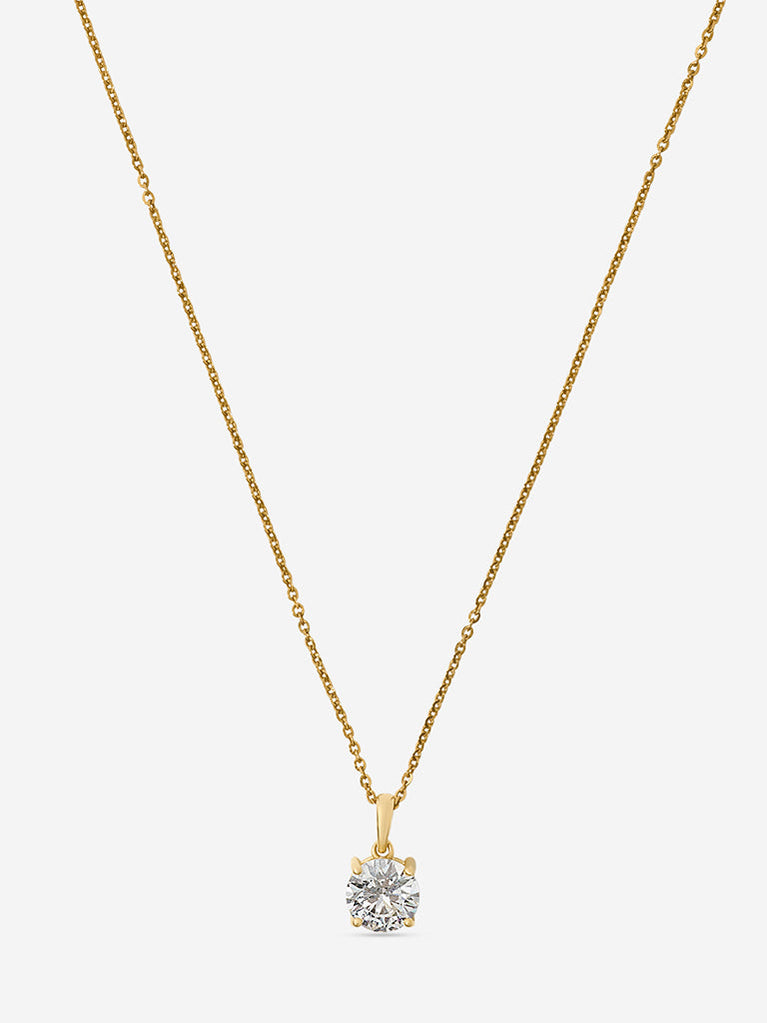 A study in modern elegance, this pendant pairs a fluid gold-vermeil chain with the timeless brilliance of a lab-grown solitaire. The finely articulated links create a graceful line across the neckline, drawing the eye to a meticulously cut stone that radiates exceptional clarity. Designed with a sculptural simplicity that feels both refined and contemporary, it’s a piece that elevates everyday styling and adds a luminous finish to evening looks.