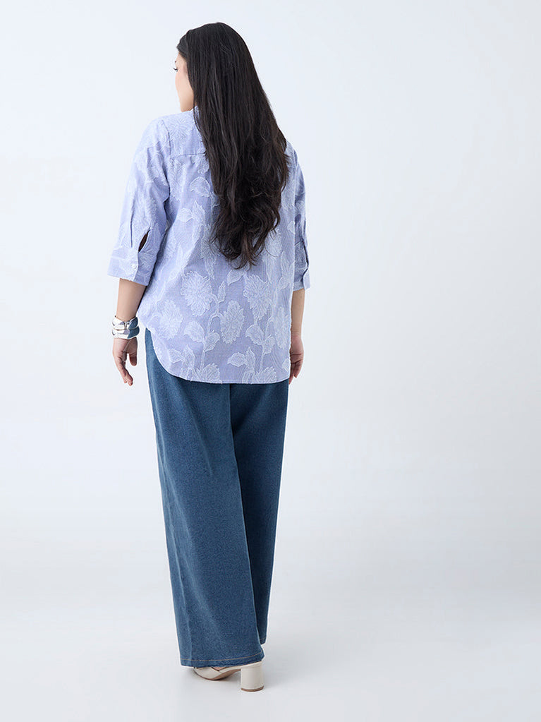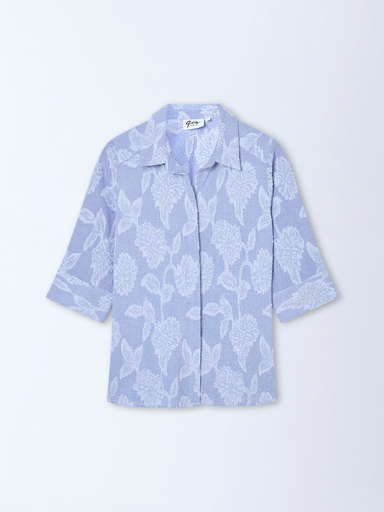 Gia Blue Botanical Detailed Cotton Shirt