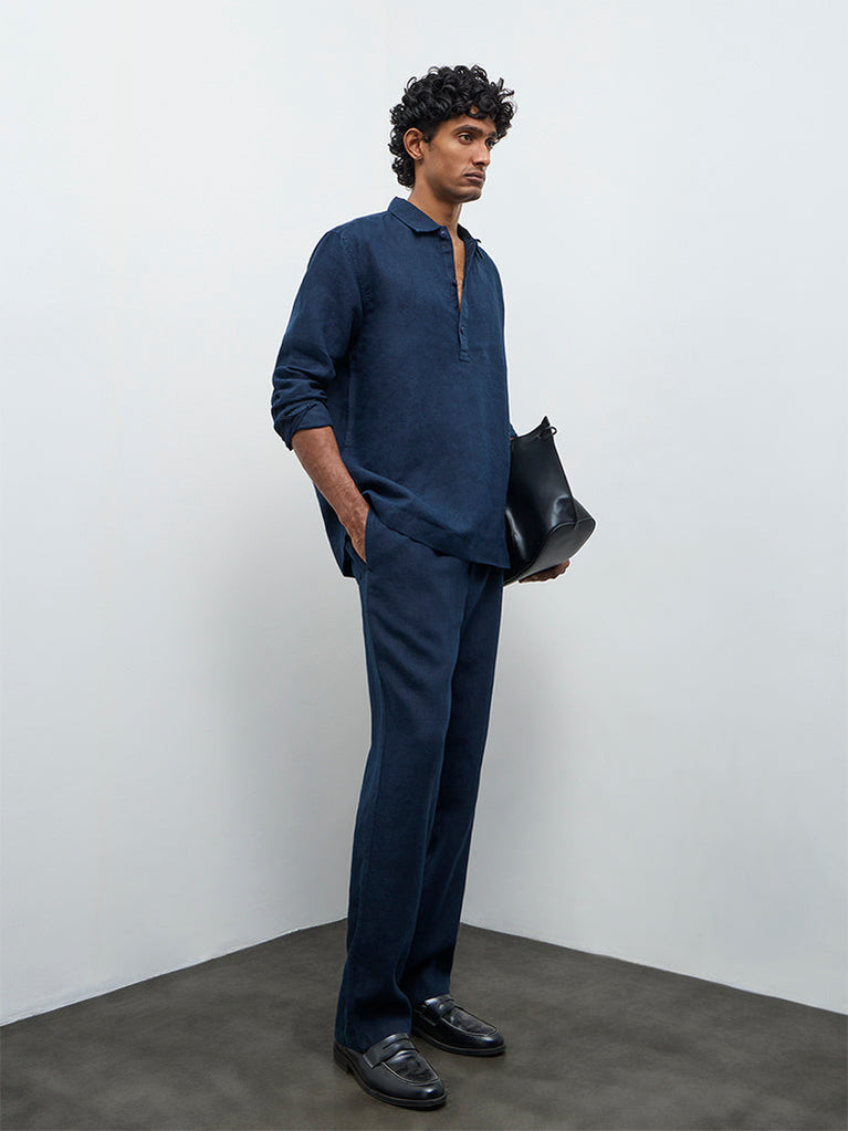 Ascot Navy Relaxed-Fit Linen Shirt